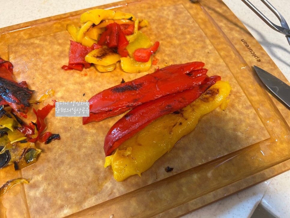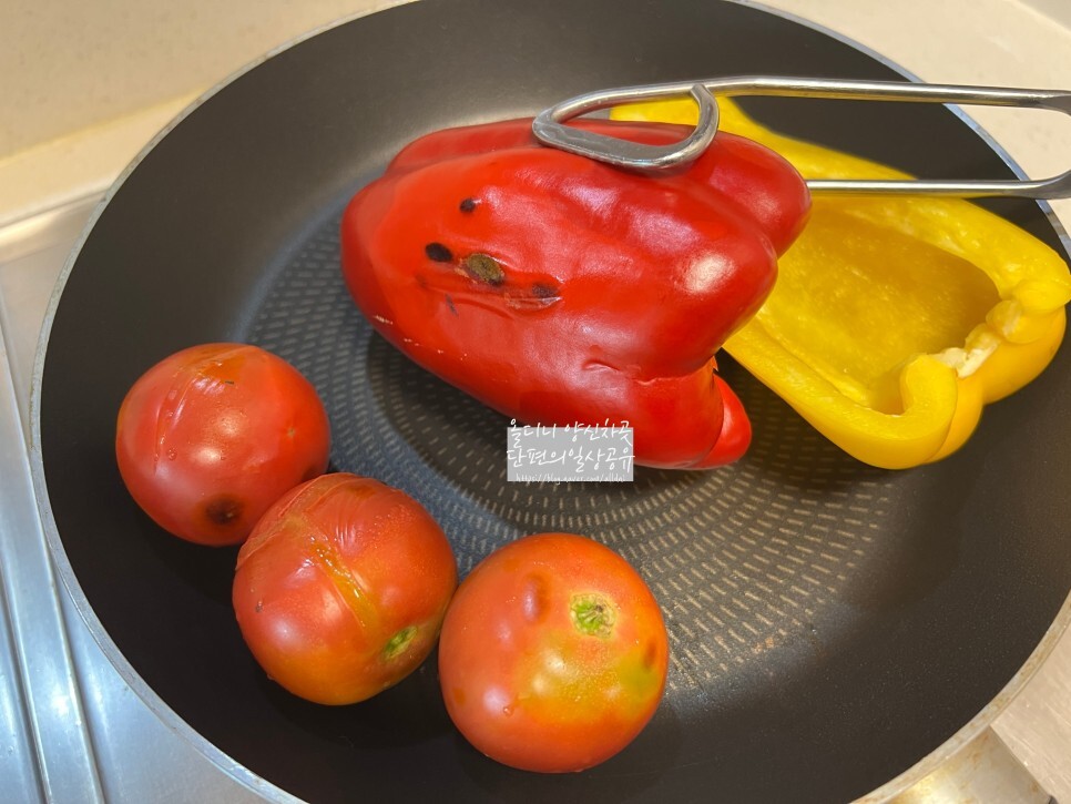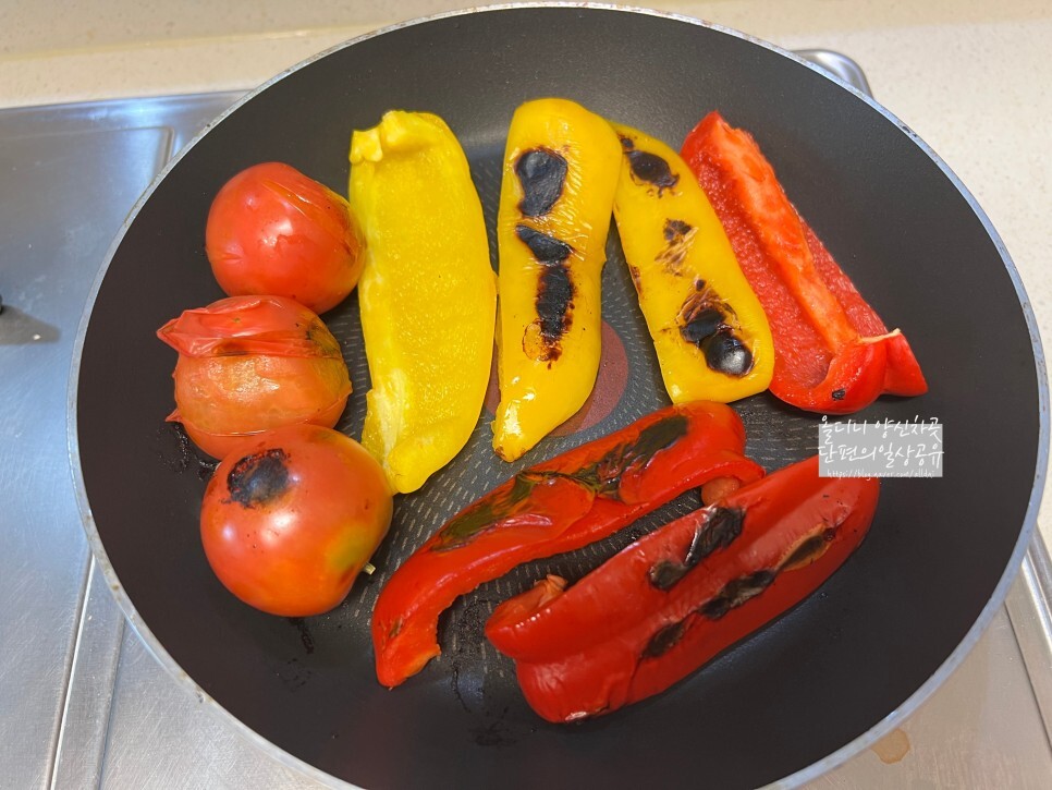 파프리카와 토마토는 직화로 굽굽 해서 껍질을 태우듯이 해서 구워야 하지만 집이기에...