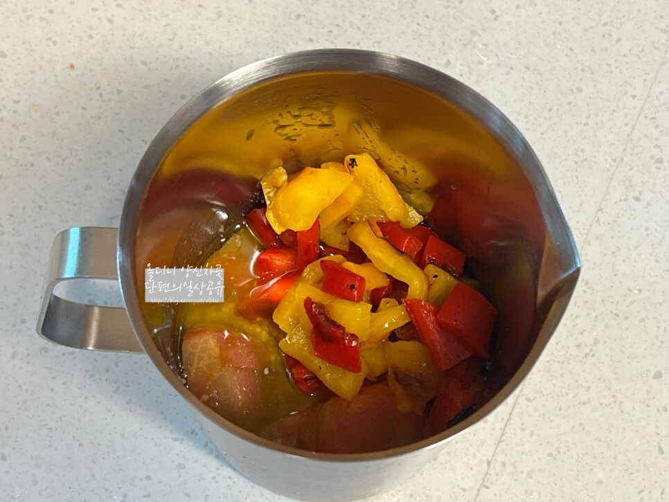입맛에 완전 잘 맞고 고기, 야채 할 것 없이 다 잘 어울렸던 로메스코소스 레시피 시작.